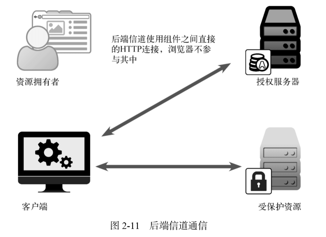 OAuth流程中的很多部分都使用标准的 HTTP请求和响应格式来相互通信。由于这些请求通 常都发生在资源拥有者和用户代理的可见范围之外,因此它们统称为后端信道通信