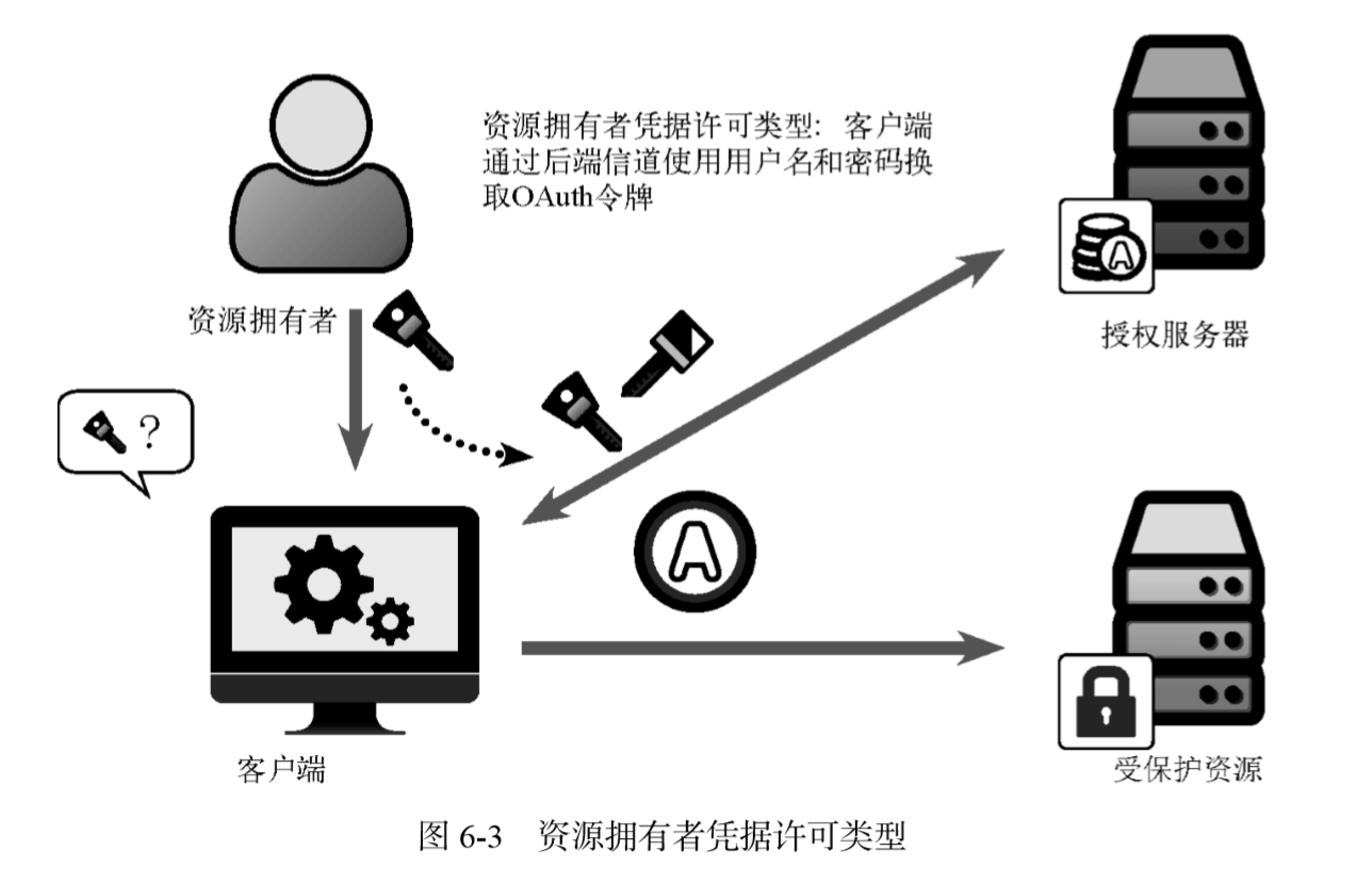 用户名和密码,那么客户端可以向用户索取用户 的凭据,然后用这个凭据换取令牌。支持客户端这样做的是资源拥有者凭据许可类型,也叫作密码流程。
